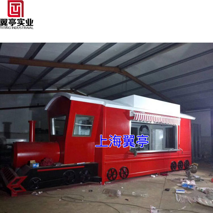 YT-S12火車頭售貨亭造型別致、整體設(shè)計采用仿造火車頭的外觀形式款式美觀、大氣 這樣的售貨亭無論是擺放在哪里、都會是城市中的風景線、在火車頭售貨亭的外部安裝裝飾滑輪更加別致。里面的配套設(shè)施也很完善、有工作臺、燈飾、插座等!
